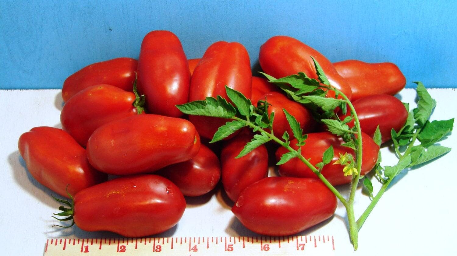 San Marzano Paste Tomato is indeterminate and has a somewhat longer season than other paste tomato varieties. A compact and prolific producer of bright-red, slim, 3-4 inch, fruit. A paste tomato with a pointy end, heavy walls, and little juice, so it is great for tomato sauce. Crack-resistant. Better tasting than Roma. Marzano tomatoes are thicker and pointier in shape. The flesh is much thicker with fewer seeds, and the taste is much stronger, sweeter, and less acidic. 82 Days