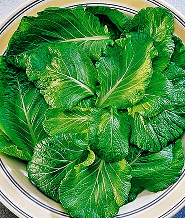 Tendergreen Mustard or (Komatsuna) is milder than regular mustard greens. Tendergreen has smooth leaves and is a fine spinach substitute, especially in the fall. Its tender leaves and flowering stems are used for raw or cooked and have a flavor between mustard greens and cabbage. Seeds germinate and proliferate in the late summer heat and mature to tender sweetness in cool weather. Thinnings are delicious as fresh snacks or salads. Heat and drought-resistant. 45 days (mature) or 20 days (baby greens).