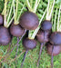 This ancient variety dates back to 1824. It has likely been in cultivation for hundreds of years, a true heirloom with a snowy white interior and jet-black skin. Large round globes that reach up to three inches in diameter with tall tops. The flesh is solid, crisp, and intense (hot). They are generally used for winter storage and sow in July or August. This winter radish is slower to mature than most regular radishes. Plant them in the fall and harvest them as needed. They have a tremendous zippy flavor, a bit hotter than most. Large greens. In mild climates, they traditionally grow over winter like Asian radishes. Black Spanish can also be planted early in the spring. Outstanding keeper. 55-60 days.