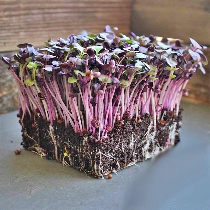 Rambo radish is another striking radish that boasts the same wonderful dark cotyledons as the Sango radish. The rosy stems and bright floral flavor add a tasty and spicy flair. Use it instead of sliced radish anywhere you would usually use radish. Radish microgreens are packed with nutritional benefits! Radish with a high anticyclonic content gives the stems and leaves a distinctive deep red color.
