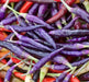 Cayenne Purple is a hot, thin-skinned chili from the Caribbean. Its aromatic pods ripen from purple to red. This is a beautiful purple variant of the popular Cayenne pepper. The fruits are several inches long, slender, and pearly dark purple in color. The flavor is similar to the standard Cayenne, extremely spicy, and quite hot for salsas!